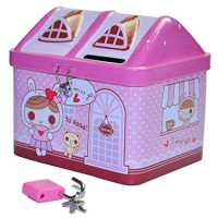 House Shaped Coin Bank Box with Lock